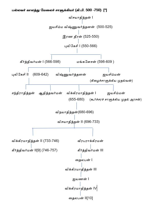 (4) பல்லவர் காலத்து மேலைச் சாளுக்கியர்[8] (கி. பி. 500-750)